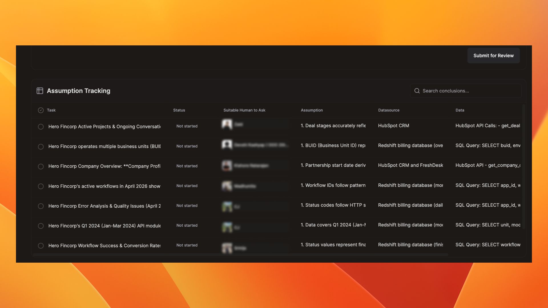 Incerto also tracks assumptions, because AI should earn your trust and not just ask for it. Every insight comes with a tracked assumption data source, what the agent inferred, and which human should verify it. Making sure everything is still under your team's control.